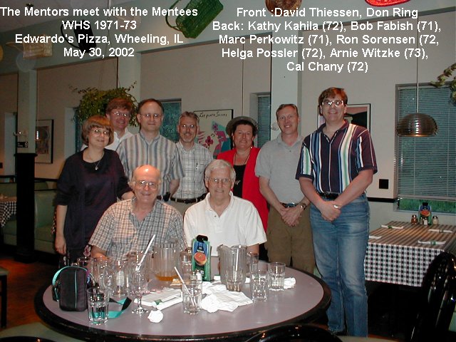 This is a small gathering of the Mentors and the Mentee's at Edwardo's Restaurant in Wheeling on 05/30/2002. Click on any picture for a larger view. Click on the last picture for a key to who was in attendance. |
